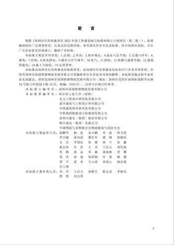 ? ? ? 本標(biāo)準(zhǔn)由深圳市深國鐵路物流發(fā)展有限公司主編,作為參編單位建學(xué)建筑與工程設(shè)計所有限公司的許潔、王靈、王紀(jì)元、鄭代俊、李鶴、姜垚等多位工程師參與了標(biāo)準(zhǔn)的起草工作。